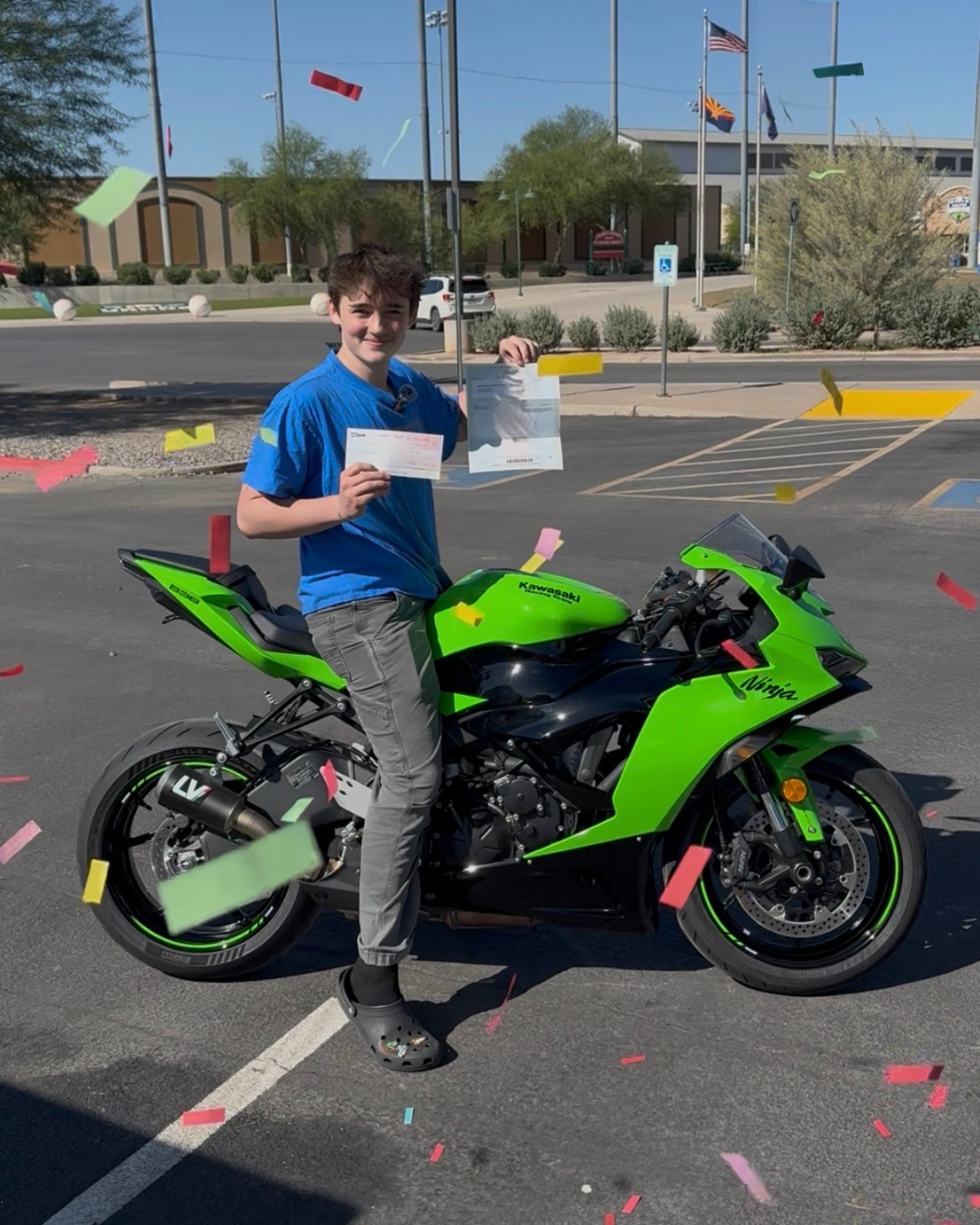 Second place winner of our dual giveaway and our youngest winner yet! Keegan just turned 18 back in June and this 2025 KRT Edition Kawasaki ZX-6R is his very first motorcycle! Keegan took the BRC1 and BRC2 before receiving his new wheels and has experience riding his friend's bike's previously. We were able to trailer this bike out to Keegan in Arizona to sign over the title in person and he was SO hyped on delivery day! If you live in AZ be sure to hit him up to go ride! (Winner day video is posted on our instagram!)