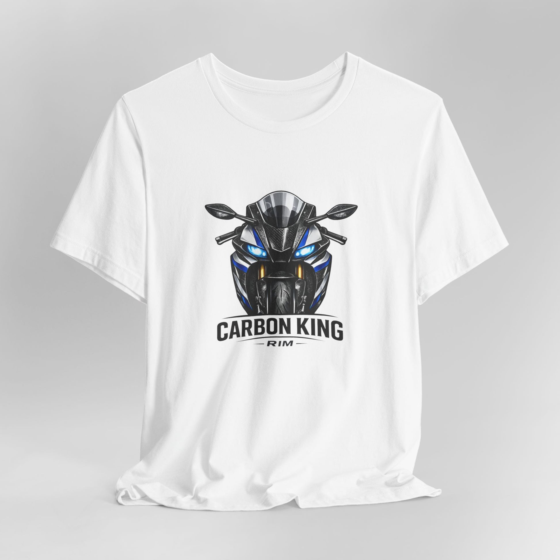 Lightweight, breathable, and built for the ride — this tee wears like a trusted layer that moves with you. The shirt’s front art shows a fierce, carbon-fiber-inspired sportbike face with glowing blue accents and the bold “CARBON KING” badge, giving it an edge-ready look without shouting. It sits cleanly at the crew neck and drapes in a retail fit, so it layers under a jacket or stands on its own when you’re out at a meet. Thoughtful details — side seams for shape retention, ribbed collar, shoulder tape and a tear-away label — keep it comfortable through long days on the road or at the garage. Ethically produced fabrics and REACH compliance mean you’re getting quality that’s made with care.
