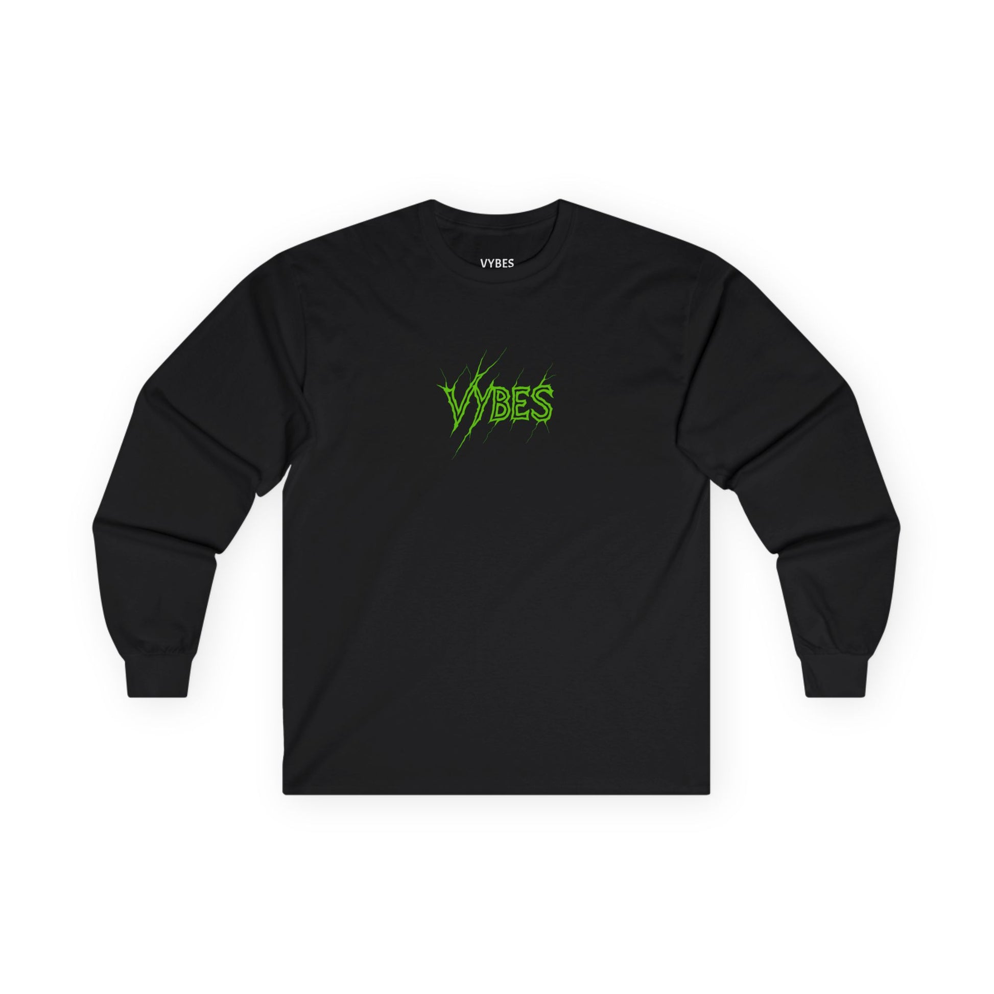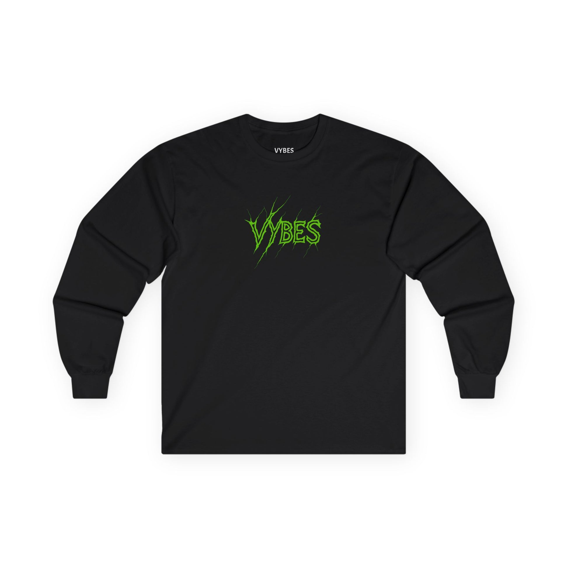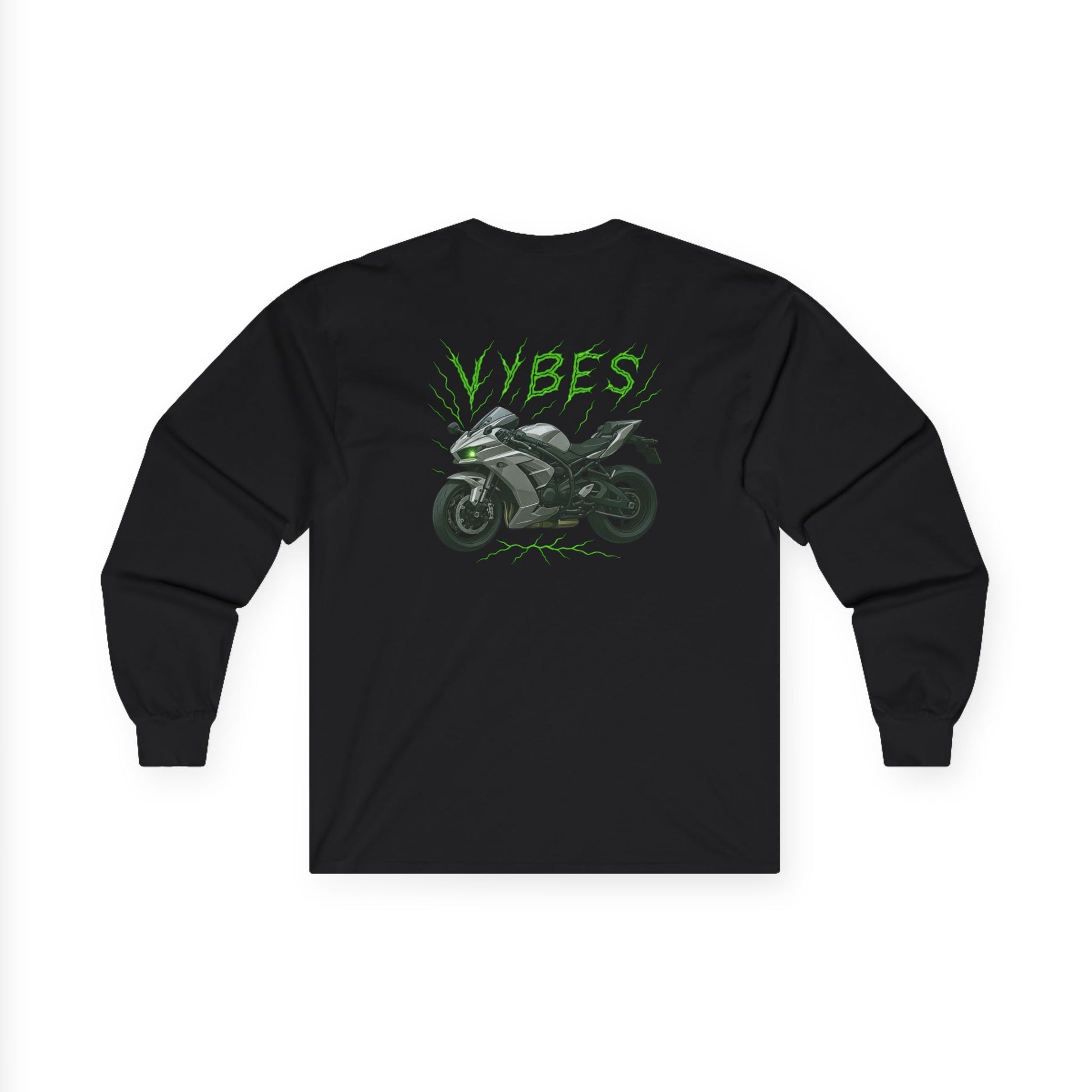 This long-sleeve tee brings a raw, nighttime energy to your wardrobe. Soft-but-thick vintage cotton holds a bold neon-green "VYBES" logo on the chest and a snarling sportbike graphic on the back — like a midnight ride captured in fabric. The tubular knit and shoulder tape give it a clean, durable shape that stands up to stretch and wear. Wear it layered under a leather jacket or alone for rides, late-night meetups, or when you want to carry that streetlight glow with you. It’s built for those who chase speed and atmosphere — familiar, slightly lived-in, and ready for the road.